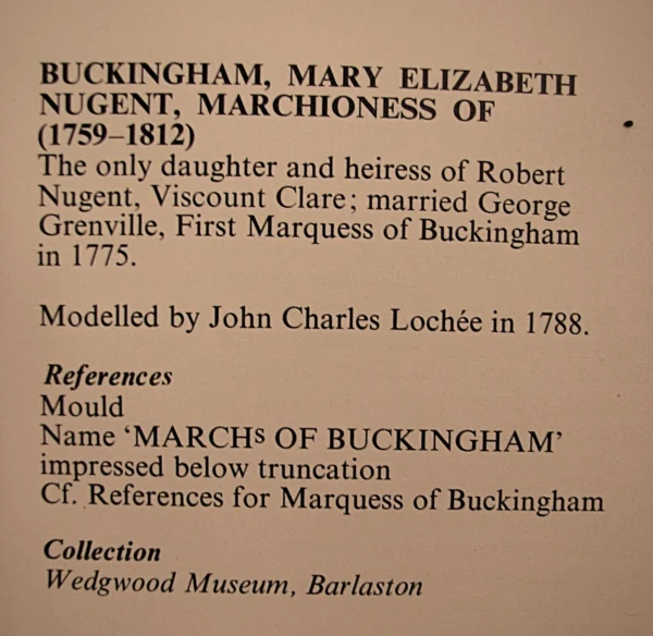 Extremely Rare 18th Century Wedgwood Jasper Medallion – Mary Elizabeth Nugent, Marchioness of Buckingham – Museum Quality